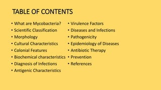 This document provides information about Mycobacteria, including: