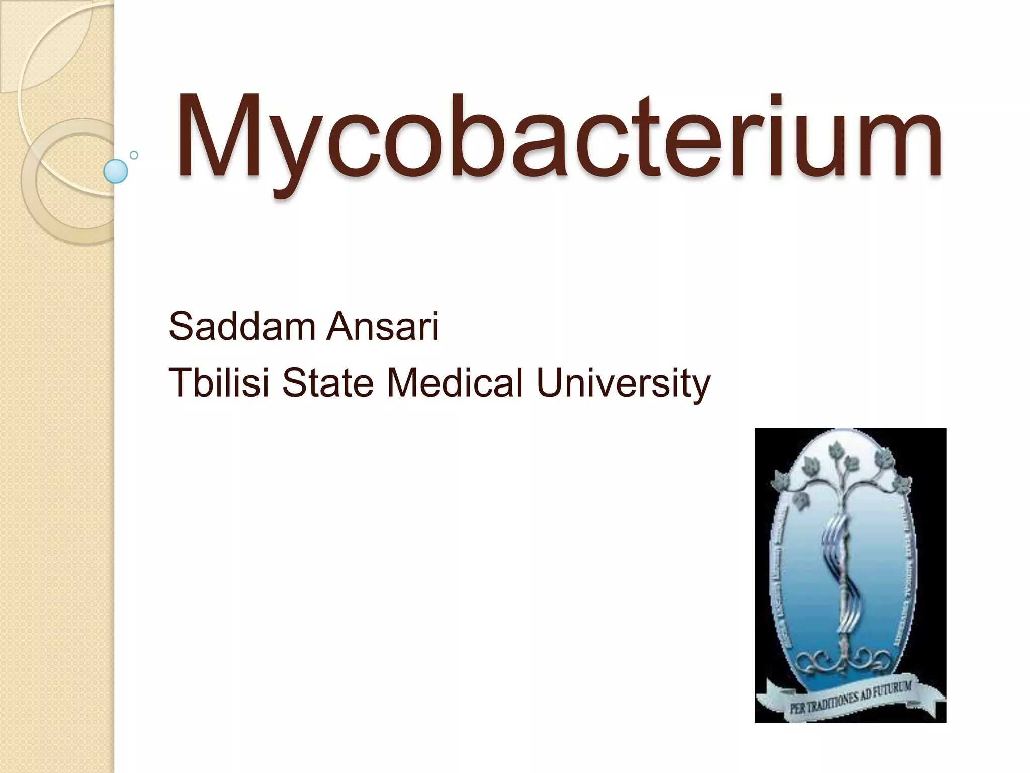 1. Mycobacterium is a genus of bacteria that includes M. tuberculosis and M. leprae, which are the causes of tuberculosis and leprosy, respectively.