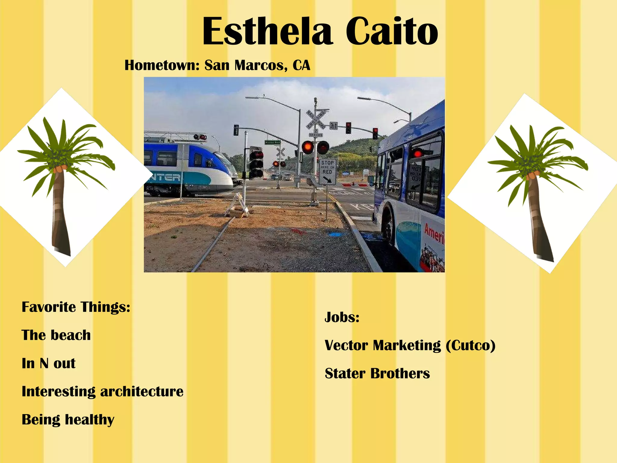 Esthela Caito is from San Marcos, CA and enjoys the beach, In N out, and interesting architecture. She has worked at Vector Marketing and Stater Brothers. Globalization has interconnected the world through technology, trade agreements, and cultural blending due to migration and missionaries. Over summer break, she took a trip to Baja California where she saw differences in culture from driving to housing. Possessions like cell phones and cars contain parts made around the world.