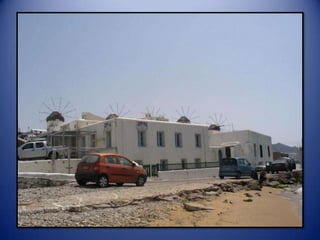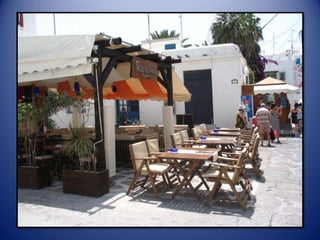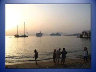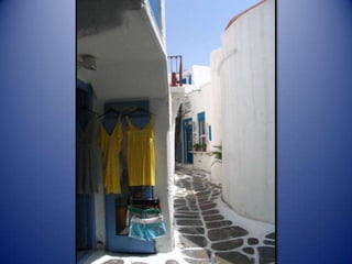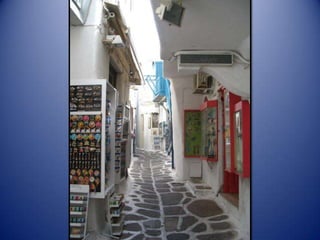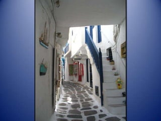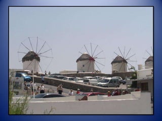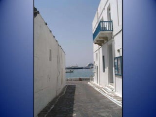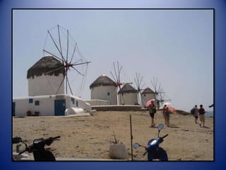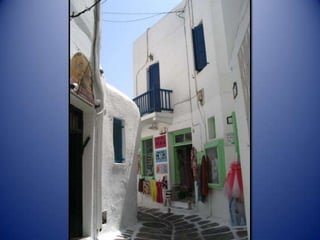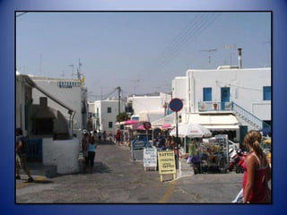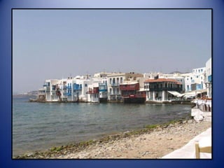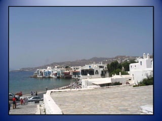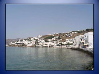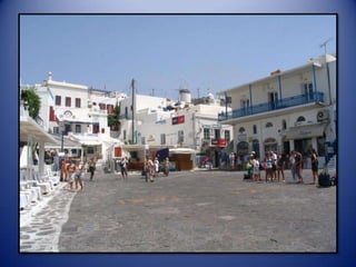 Mykonos is a Greek island known for its whitewashed buildings, blue domed churches, and beautiful beaches. The island has a long history and was an important religious center in ancient times. Tourism is now the main industry on Mykonos, attracting visitors to enjoy the island's scenic landscapes and lively nightlife.