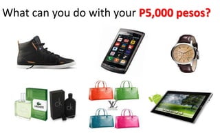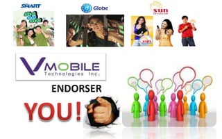 This document summarizes the business model and opportunities of a company called VMobile. It discusses how for an investment of P5,000 pesos, one can become a VMobile technopreneur and earn commissions by loading prepaid products for cellphone, internet, gaming, and cable TV onto a single e-wallet. The business aims to convert consumers to using VMobile and can generate recurring income through commissions from a network of consumers and referrals.