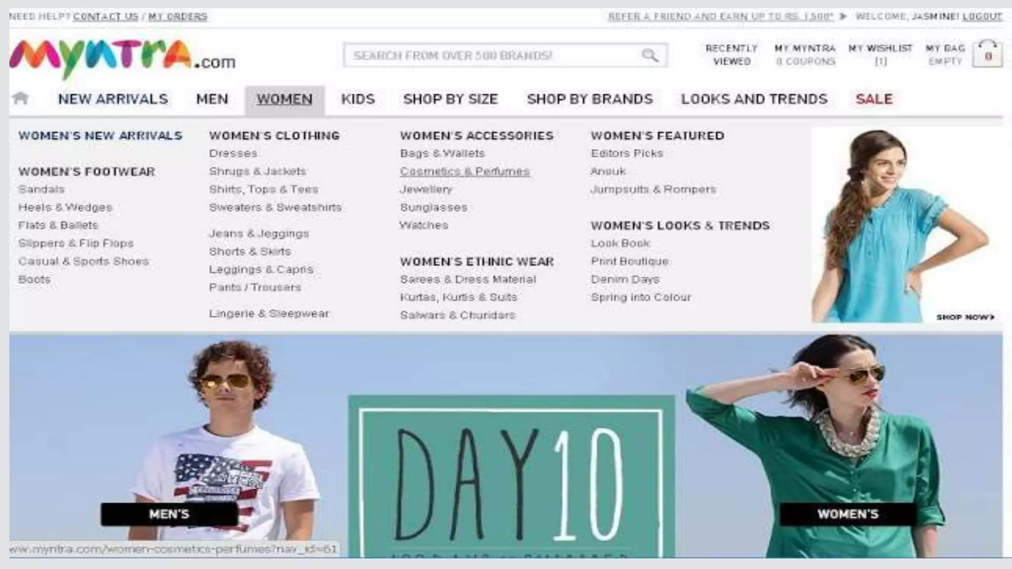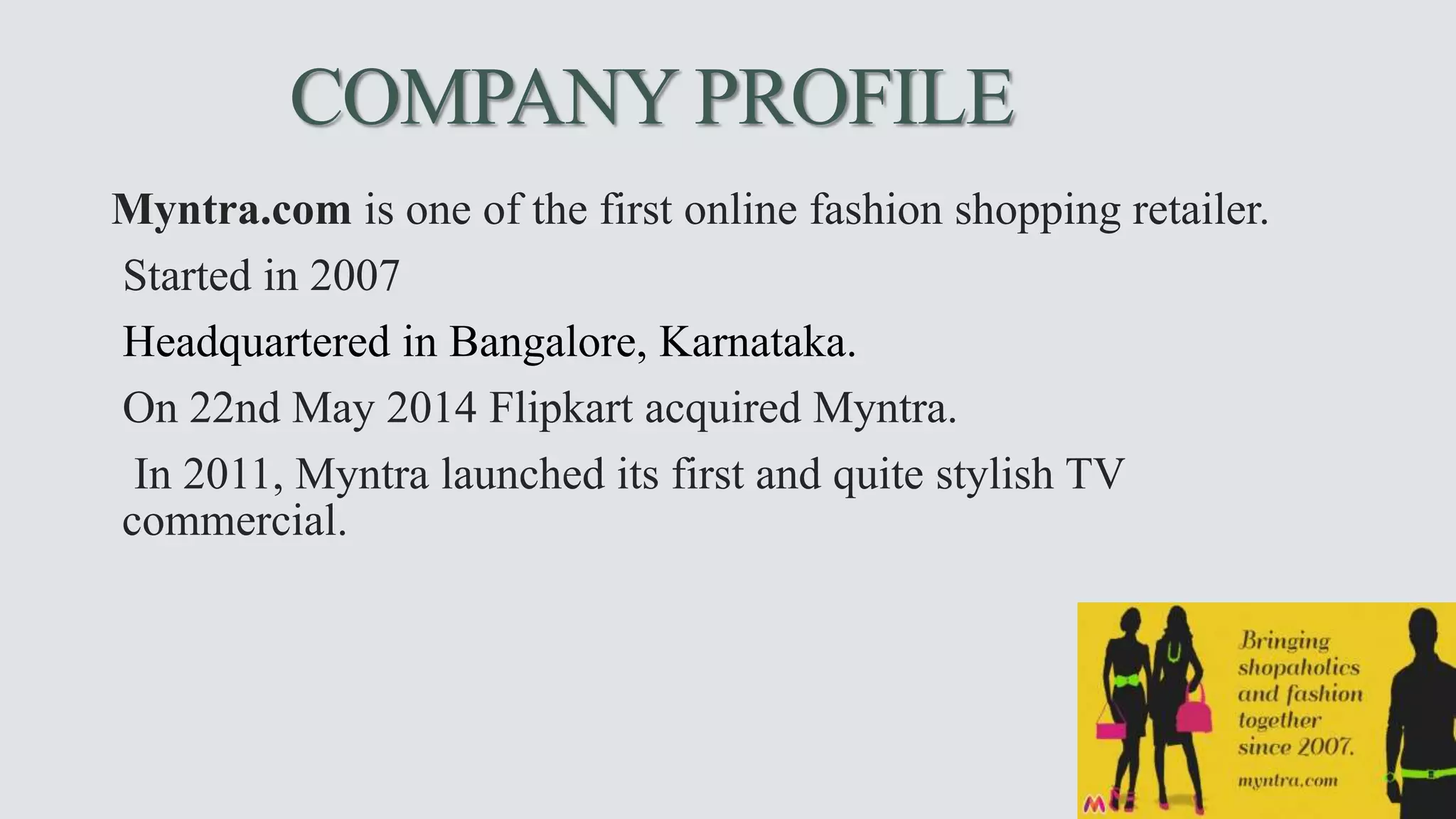 Myntra.com is an Indian online fashion retailer that was started in 2007 and is headquartered in Bangalore. It was acquired by Flipkart in 2014. Myntra acts as an aggregator for many brands, offering over 50,000 products from more than 600 brands. It ships about 5 million goods per month through its network of 3,000 sellers. Customers have expressed satisfaction with Myntra's attractive website, wide variety of products, ease of searching, trusted brands, frequent discounts, user-friendly interface, and quick delivery of well-packed orders.