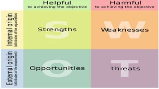 This document contains a SWOT analysis of the Indian shopping website Myntra. It identifies Myntra's main strengths as its variety of products, sales events, strong brand value and awareness, and offers for first-time customers. Weaknesses include a lack of infrastructure, consumer mindsets, limited advertising, and intense competition. Opportunities exist in selling private labels, partnering with celebrities, and expanding product lines and globally. Main threats are competitors like Amazon and Flipkart, increased competition in the fashion segment, economic fluctuations, and potential issues from being app-only.