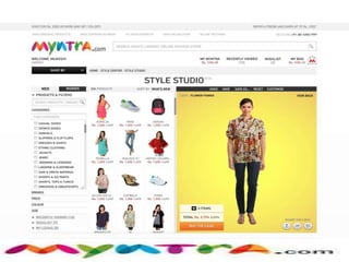 Myntra is an Indian online fashion retailer established in 2007 with headquarters in Bangalore. It was founded by Mukesh Bansal, Ashutosh Lawania, and Vineet Saxena. Myntra sells over 100 brands and focuses on usability, 24/7 support, fast shipping, and hassle-free returns. It has received several awards and is among the top 10 e-commerce companies in India.
