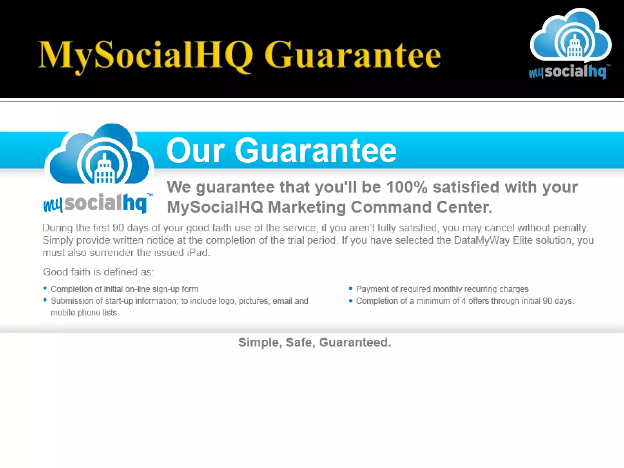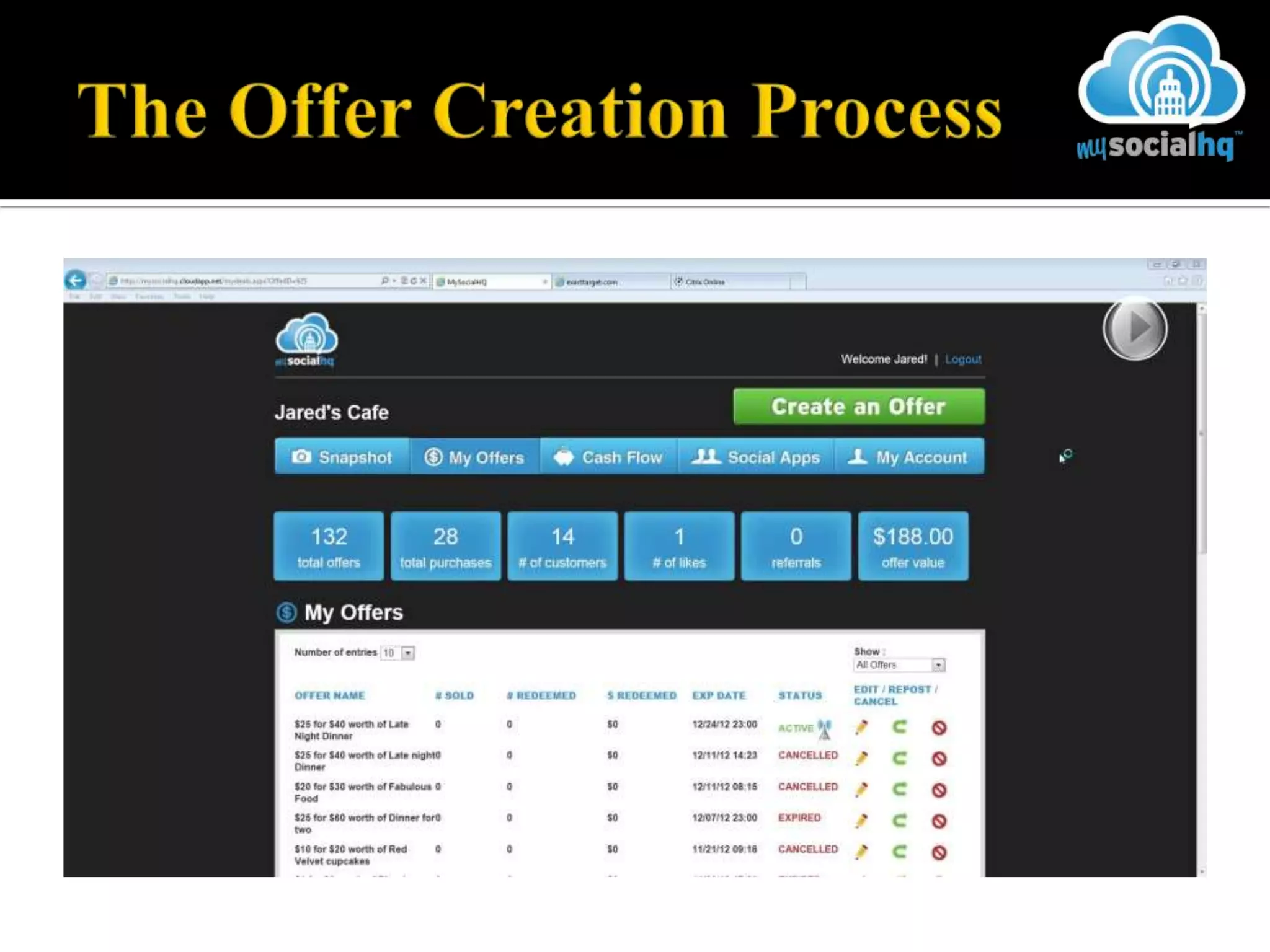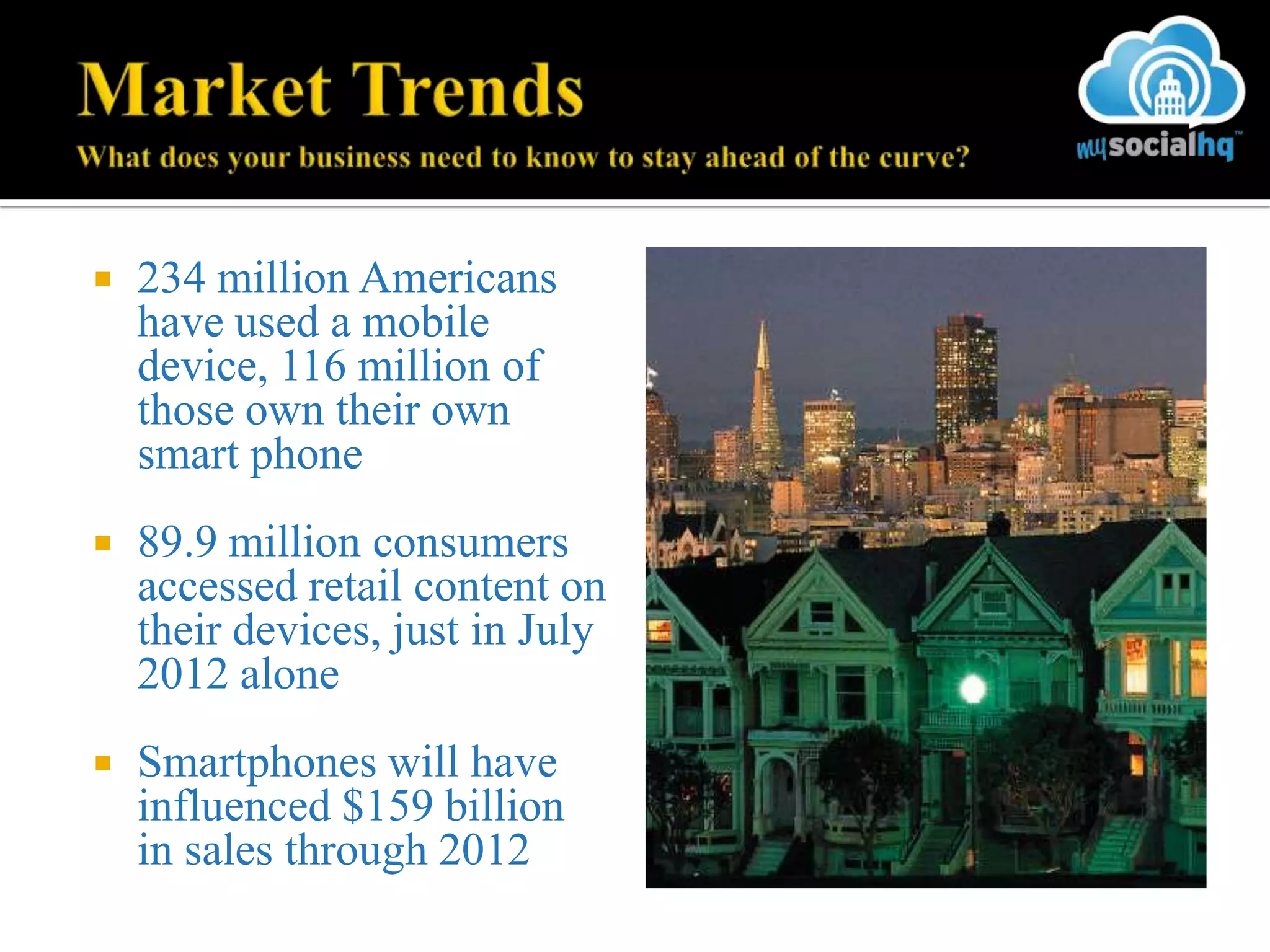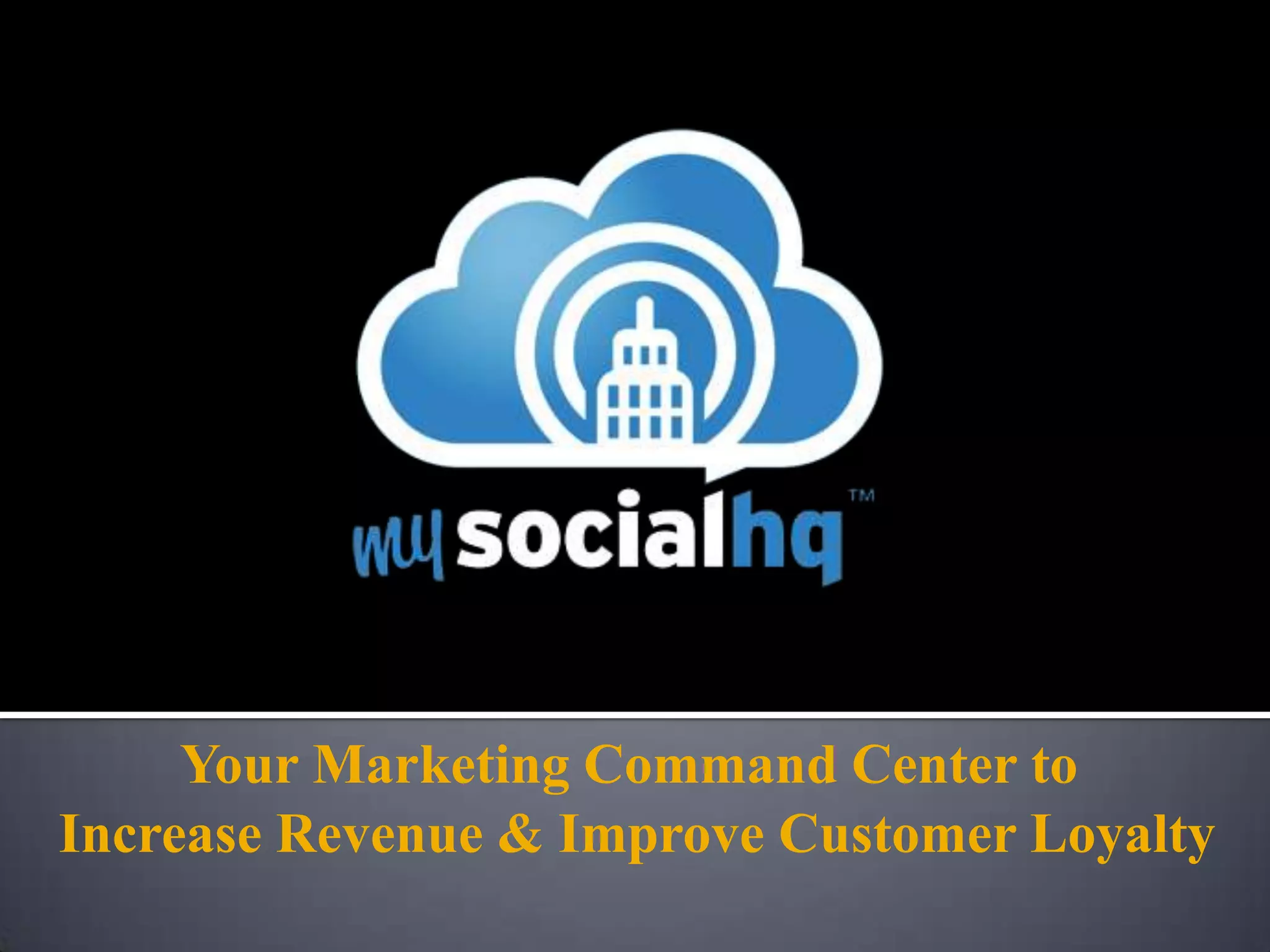 The document outlines the MySocialHQ marketing platform which leverages mobile and social media technologies to help small and mid-sized businesses increase revenue and customer loyalty by capturing customer data, engaging customers with personalized offers across multiple channels, and providing analytics to measure return on investment. Some key capabilities of the platform include social media marketing, mobile redemption of offers, data collection and management tools, and customizable daily deals and promotions.