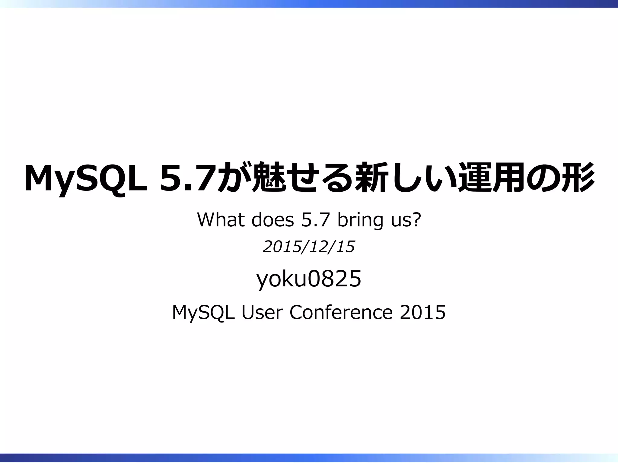 2015/10/21 5.7.9 MySQL 5.7 GA