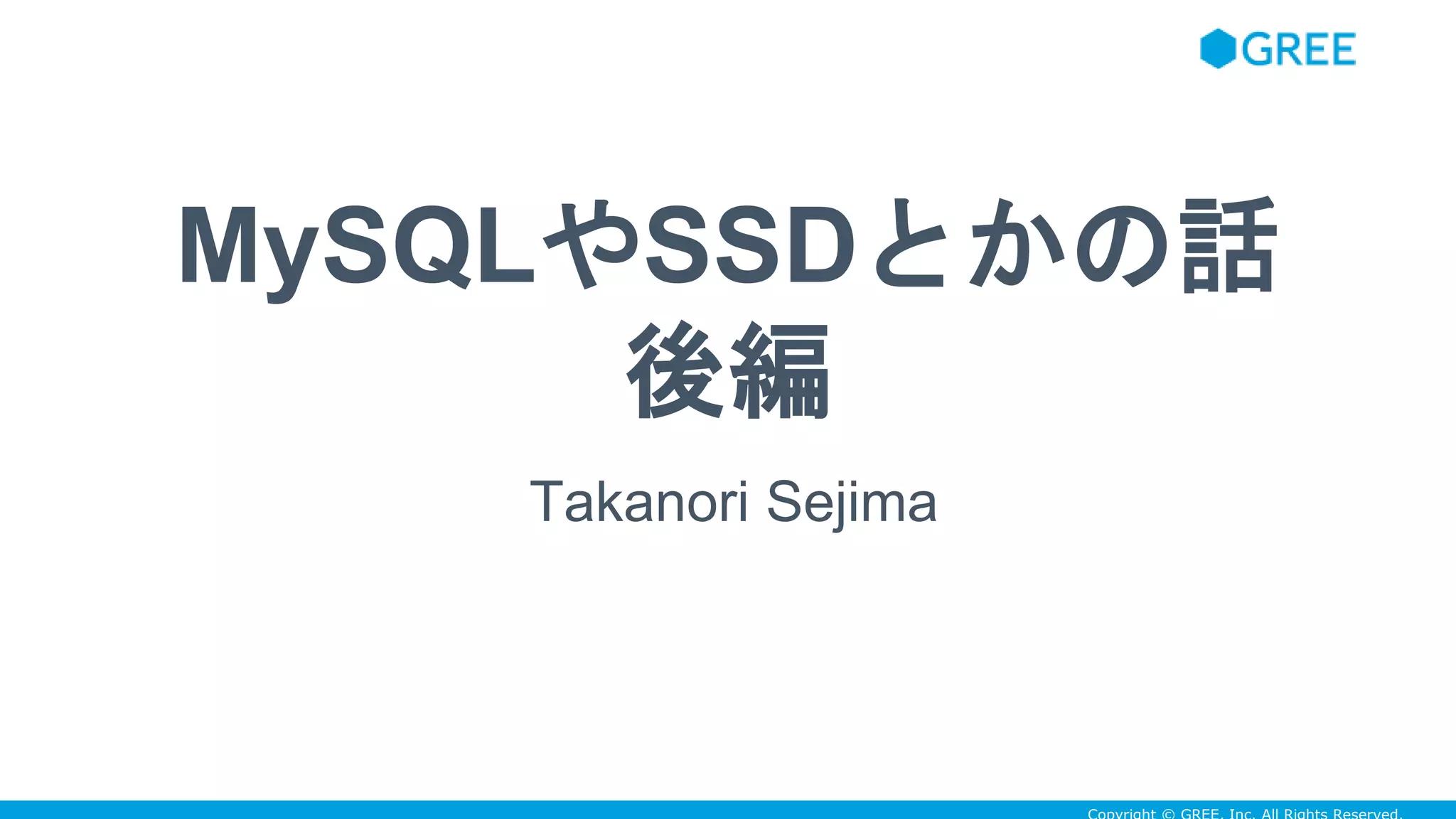 瀬島 貴則(グリー株式会社) MySQLやSSDとかの話・後編 GREE Tech Talk #09「MySQL」での登壇資料です http://techtalk.labs.gree.jp/