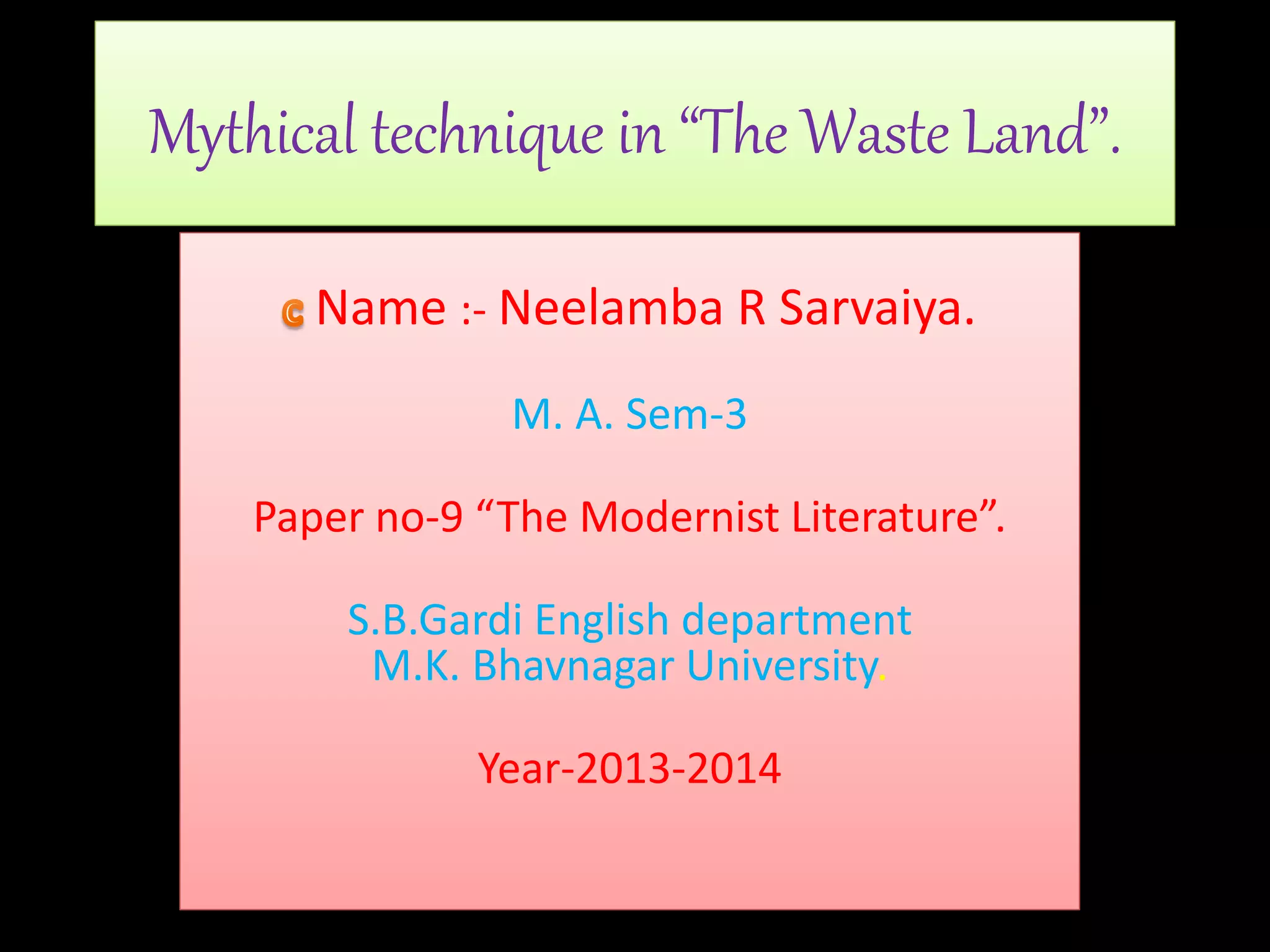 This document discusses T.S. Eliot's use of mythical techniques in his poem "The Waste Land". It notes that Eliot was considered a "mythic poet" because he used mythic perspectives to view the world as unified despite contradictions. It discusses how Eliot drew from myths of the Fisher King and the wasteland to symbolize the spiritual decay of modern times. Eliot defined his technique of drawing parallels between the contemporary era and mythology as "the mythical method". The document explores some of the mythical backgrounds that influenced Eliot, including the works of Jessie Weston and James Frazer that he drew upon.