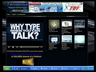 The document presents an overview of a company founded in 2002 that leverages internet-based products to facilitate global communication and offers business opportunities through video technology. It outlines key statistics related to internet and email usage, the company's product offerings, and potential earnings through various commission structures. Additionally, it emphasizes the benefits of joining the company, including high payouts and growing market share.