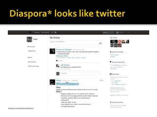 Angus Fox gave a talk drawing on information from dev.twitter.com about changes to Twitter's APIs and services. He summarized updates to SSL certificates and streaming APIs, and introduced two test accounts for generating experimental data. He also discussed new features for embedded tweets, alternatives to Twitter like App.net and Diaspora*, and the protocol Tent which aims to put users in control of their data.