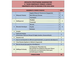 ΩΡΟΛΟΓΙΟ ΠΡΟΓΡΑΜΜΑ ΜΑΘΗΜΑΤΩΝΓ' ΤΑΞΗΣ ΗΜΕΡΗΣΙΩΝ ΓΕΝΙΚΩΝ ΛΥΚΕΙΩΝ