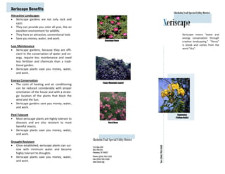 Xeriscaping provides attractive, low-maintenance landscaping while conserving water and energy. Xeriscaping uses drought-resistant plants that require little water and fertilizer. It can save homeowners money on their water bill and lawn care. Proper planning, soil preparation, plant selection, irrigation, and mulching are key principles to establish a successful xeriscape garden. Once established, xeriscaping reduces costs and environmental impacts compared to traditional landscaping.