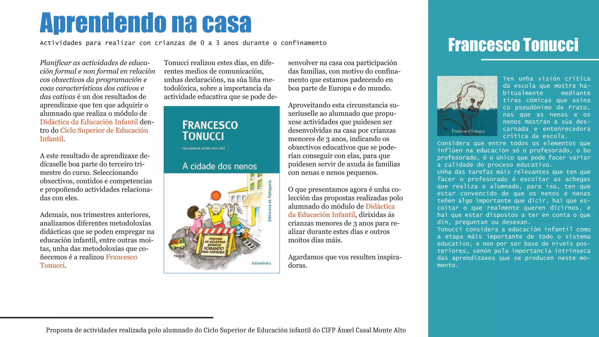 Proposta de actividades realizada polo alumnado do Ciclo Superior de Educación infantil do CIFP Ánxel Casal Monte Alto