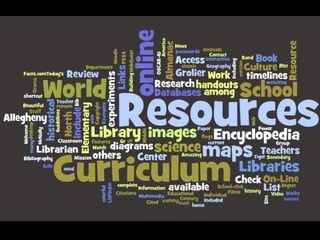 This document provides an overview of Library 2.0 tools and resources for a school librarian. It lists several digital storytelling, polling, photo, virtual tour, timeline, and professional development tools that could be used in lessons and projects. The document also asks teachers about what types of collaboration and lessons they currently do, barriers to implementation, and what support they need to incorporate more technology-based activities.