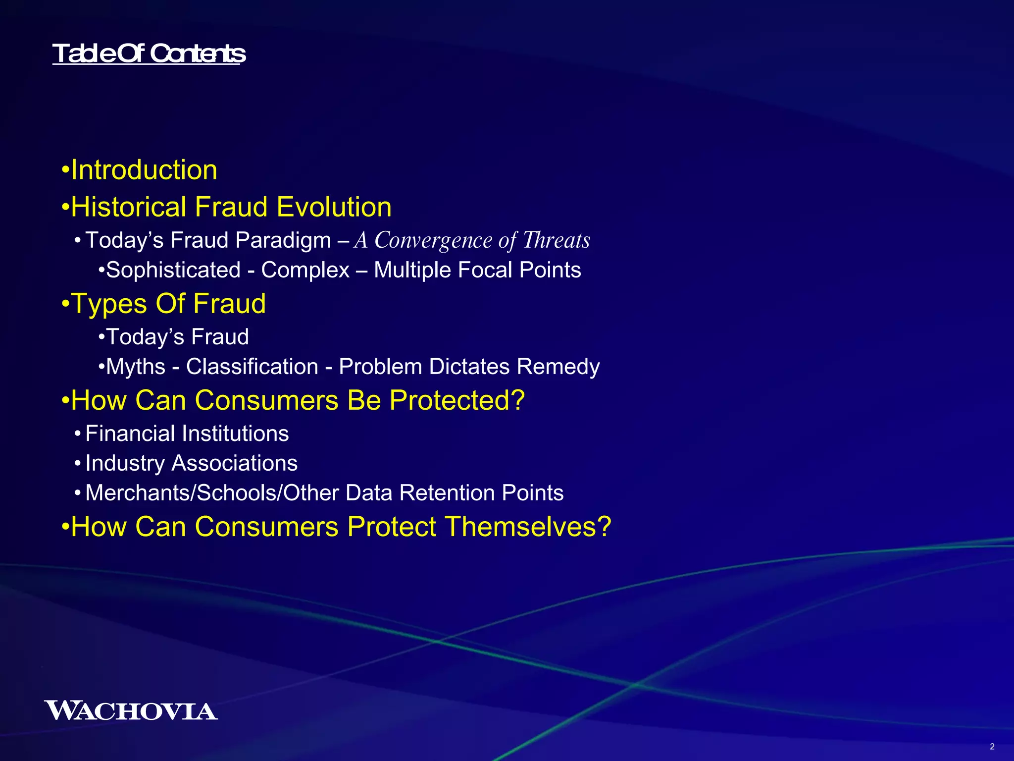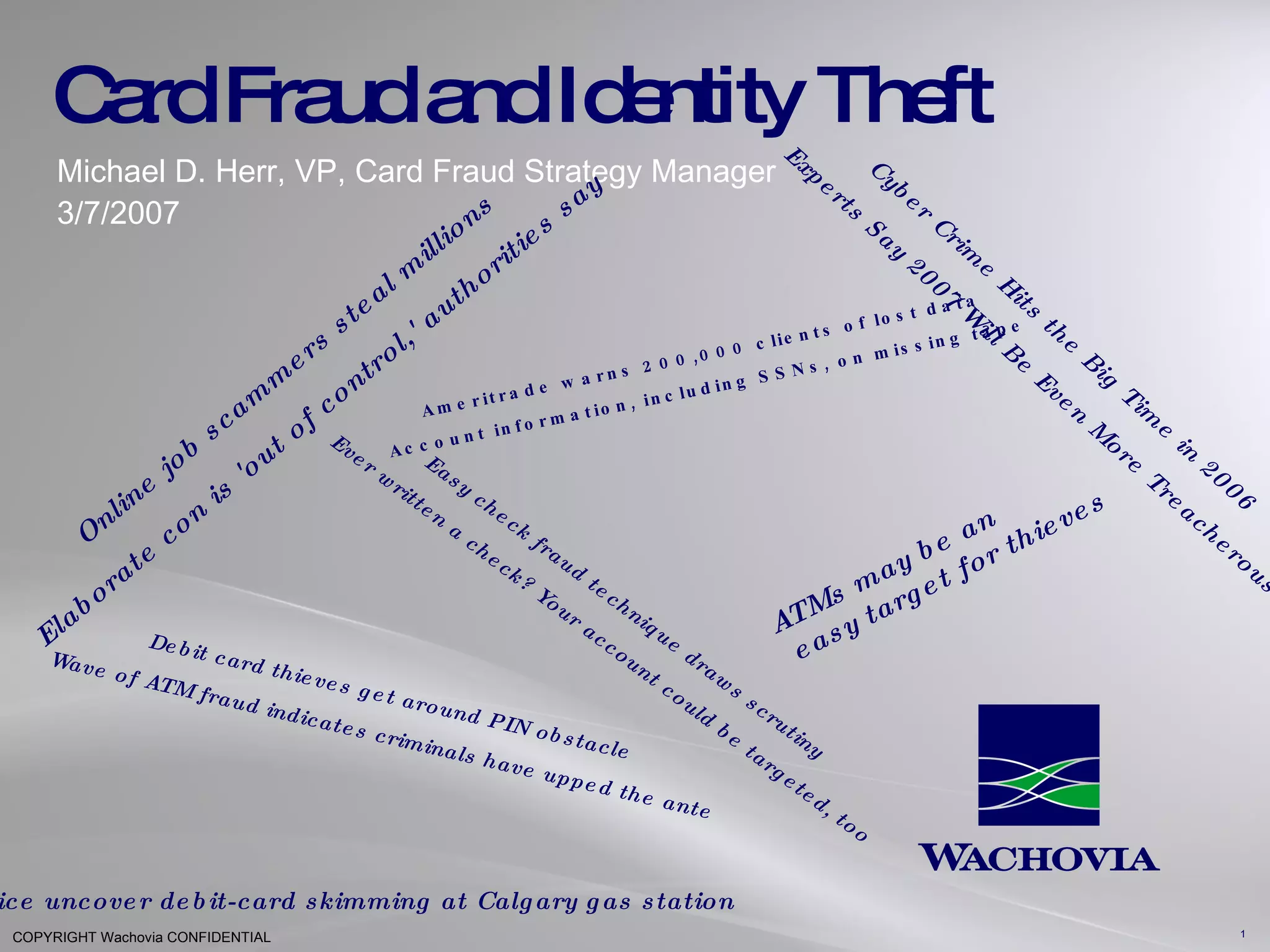 The document discusses the evolving landscape of card and identity fraud, noting that: