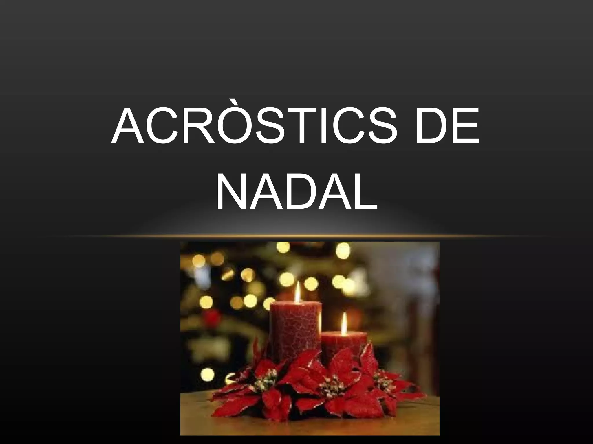 N oves estrellesbrillen al cel. A ra per Nadal neva boletes de sucre. D ia de Nadal amb molts regals. A l Nadal cada dia un regal. L a felicitat en aquests dies és molt bonica. Sergi Requena