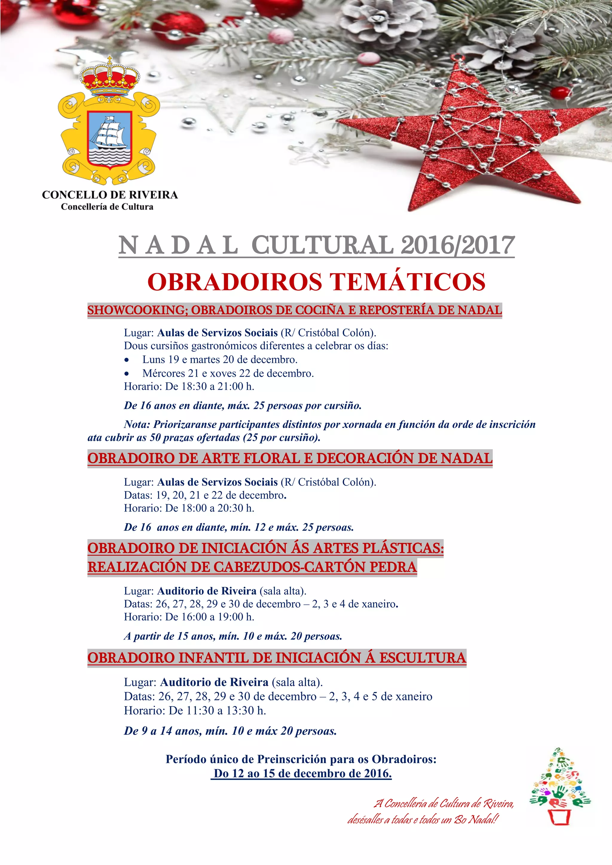* Listaxe de Admisión o 16 de decembro na web municipal e no C.C. Lustres Rivas.