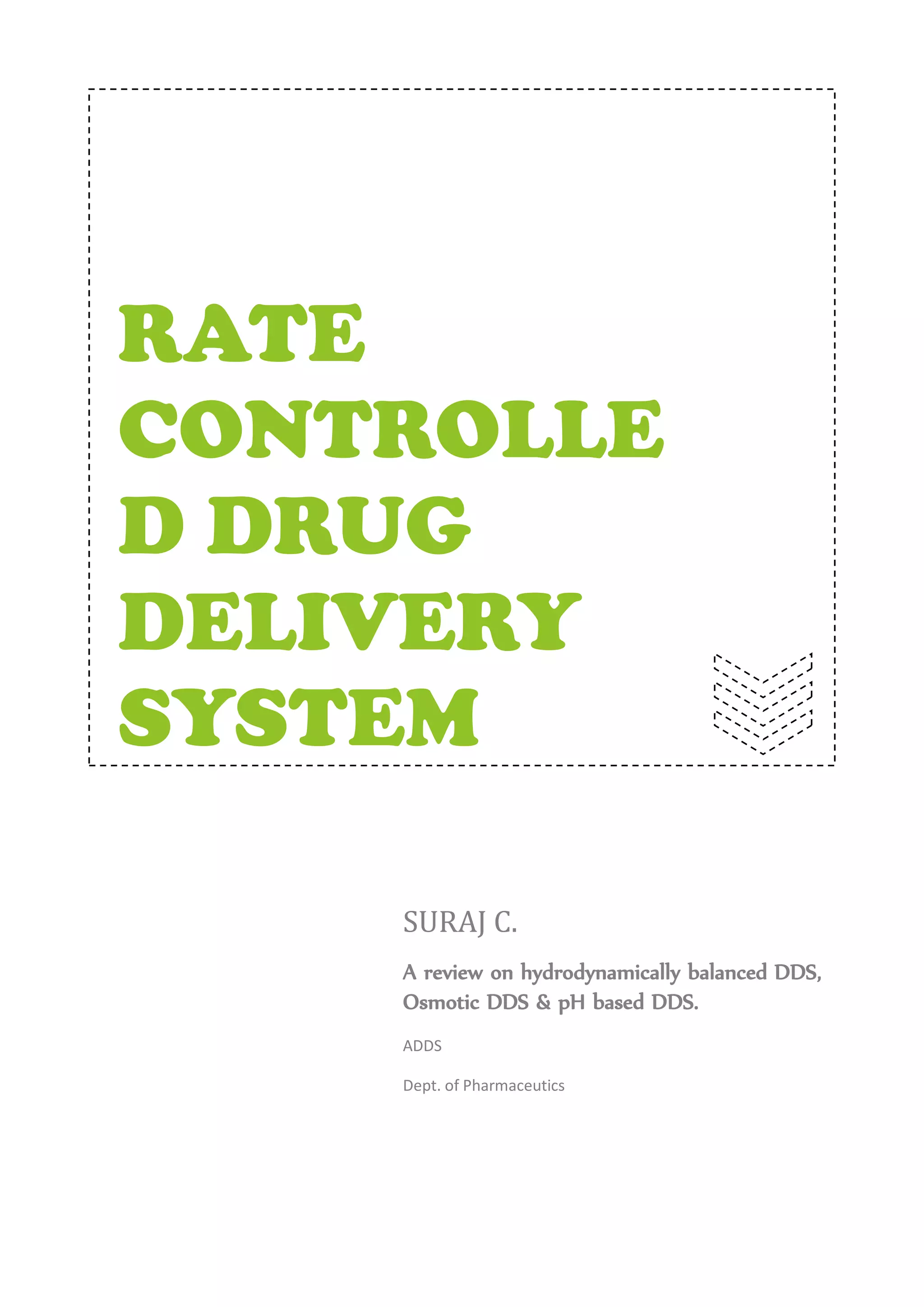 This document provides an overview of three types of rate controlled drug delivery systems: hydrodynamically balanced systems, osmotic pressure controlled systems, and pH dependent/independent systems.