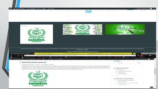 The document provides information about the National Database and Registration Authority (NADRA) of Pakistan. It discusses NADRA's role in issuing secure identification cards and documents to citizens. It outlines NADRA's history dating back to 1973, its products and services, organizational structure, and software and hardware interfaces. It also describes specific functional and non-functional requirements for NADRA's project management system including user interfaces, data extraction, transformation and loading processes, and requirements for security, integrity, efficiency and flexibility.