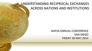 The document discusses reciprocal exchanges in international education, highlighting various models such as university-wide exchanges and third-party programs. It presents insights from surveys comparing UK and US institutions, addressing motivations for participation, cost factors, and institutional strategies. Additionally, it outlines successful exchange programs, challenges in managing partnerships, and proposes future leadership initiatives in exchange administration.