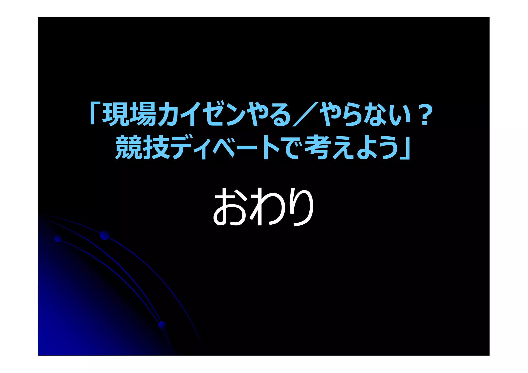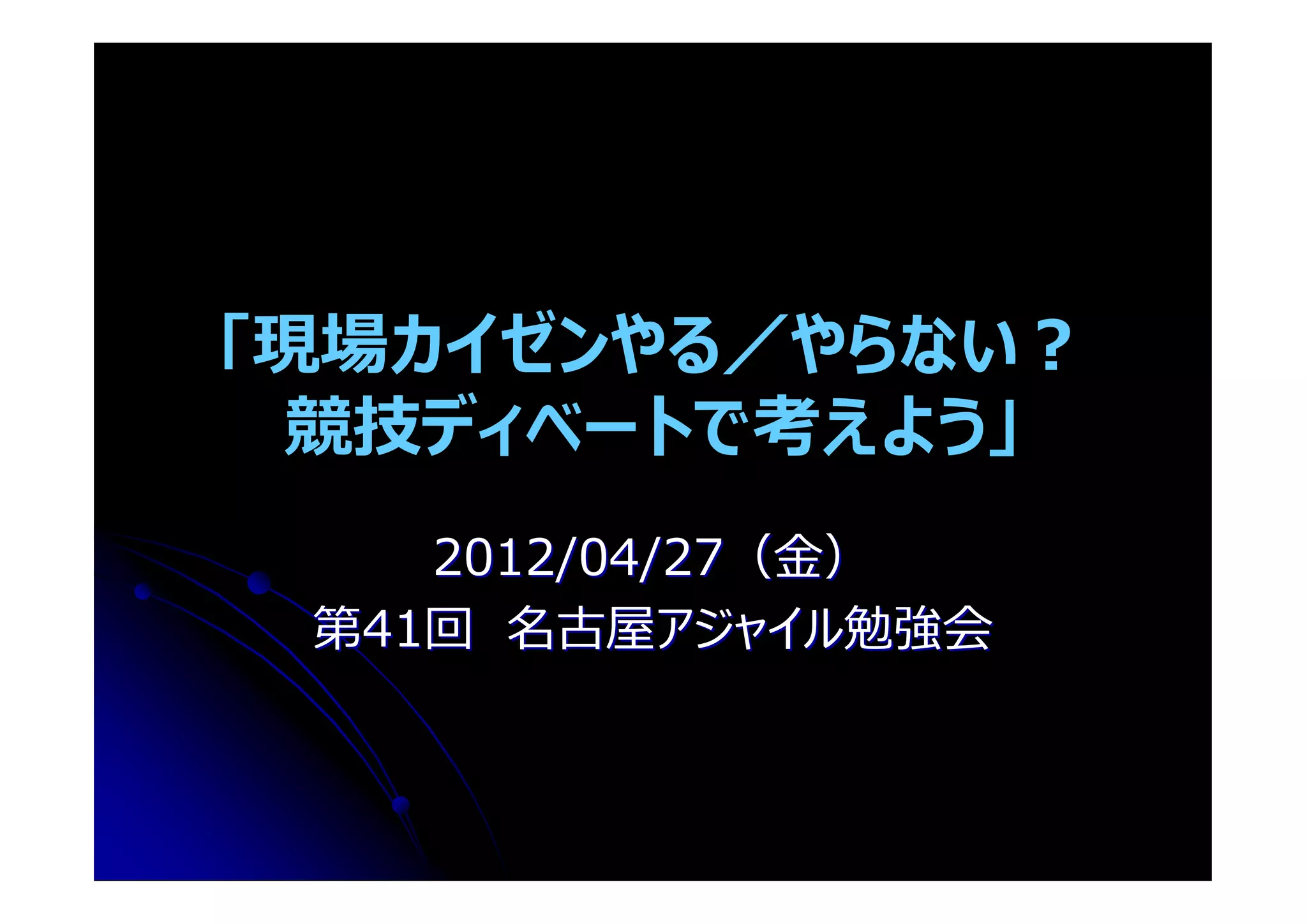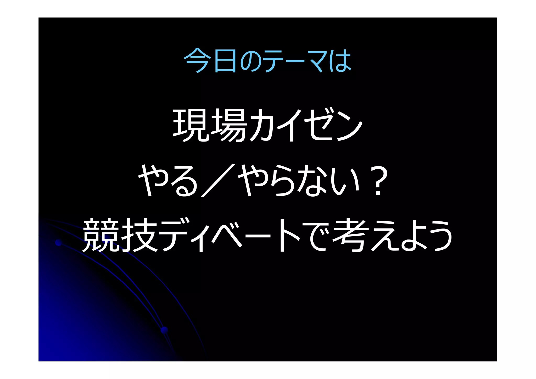 第41回 名古屋アジャイル勉強会 「現場カイゼンやる/やらない?競技ディベートで考えよう」 社会人向けディベート初心者を対象にした勉強会を行った時のワークショップ資料です。