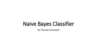 The document discusses the Naive Bayes classifier and provides examples of its use. It begins by explaining the basic probabilities involved in a Naive Bayes model using a simple example of weather and whether a child goes to school. It then shows how to calculate the probabilities for a golf example using weather attributes. Finally, it demonstrates how to classify a new example and lists some common applications of Naive Bayes classifiers like text classification and recommendation systems.