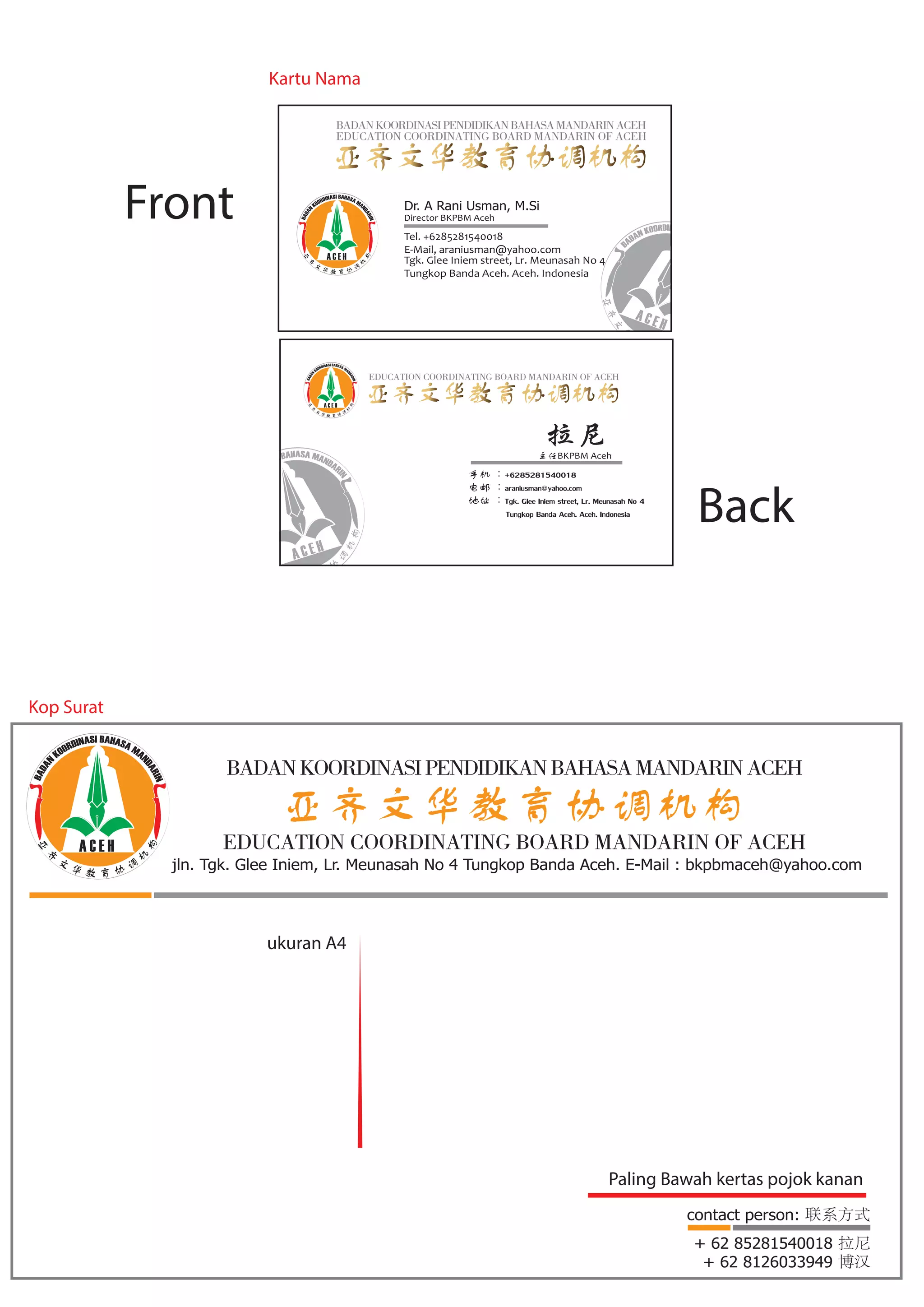 This kind of name card. or logo created by BKPBM aceh, on this card there are two languages first english and second is chinese or mandarin