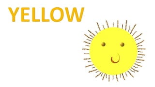 This document discusses primary colors and asks the reader to identify red, blue, and yellow objects. It provides vocabulary words for the primary colors red, blue, and yellow as well as examples like apples, the sky, and the sun. The document quizzes the reader on identifying the color red and provides positive feedback when answered correctly.