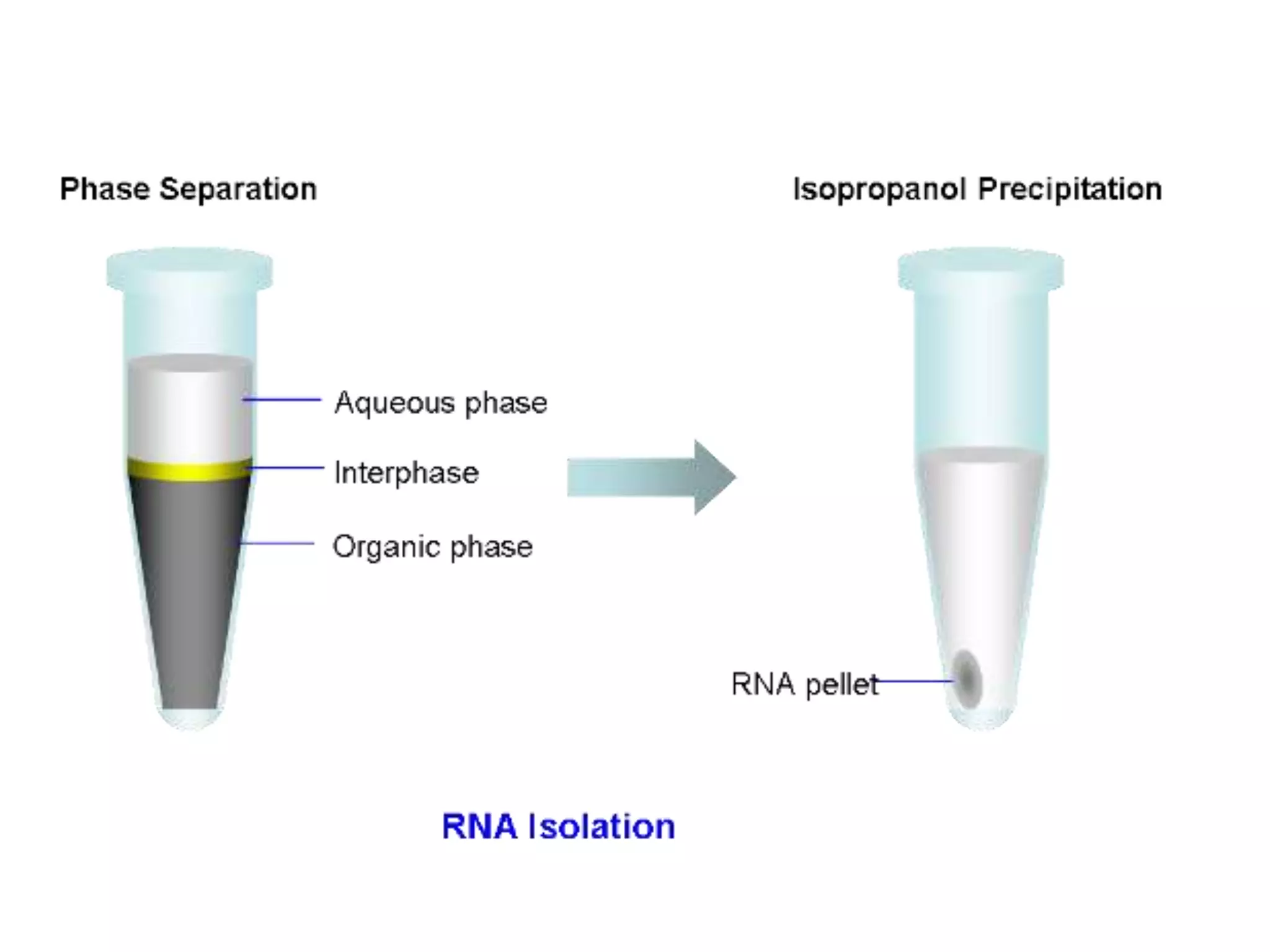The document discusses the process of isolating RNA from cells and tissues using TRIzol Reagent. TRIzol works by maintaining RNA integrity during tissue homogenization while disrupting cells. Chloroform separates the solution into aqueous and organic phases after centrifugation, with RNA remaining in the aqueous phase. RNA is then precipitated with isopropyl alcohol and can be used in downstream applications after being washed with ethanol and dissolved in water. The five step procedure involves homogenization, phase separation, RNA precipitation, washing, and dissolving the RNA.