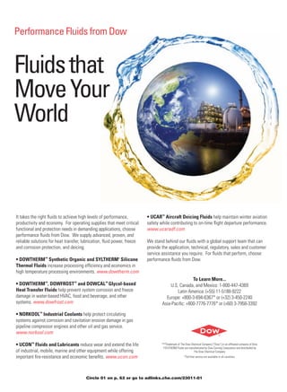 This document discusses heat exchangers and provides information on performance fluids from Dow Chemical. It summarizes Dow's portfolio of advanced performance fluids for applications such as heat transfer, lubrication, fluid power, freeze protection, corrosion protection, and deicing. The fluids help improve processing efficiency, prevent corrosion and freeze damage, protect systems, reduce wear, and offer economic and fire resistance benefits. The document encourages choosing Dow's performance fluids for applications requiring critical functional and protection needs.