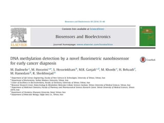The document discusses nanobiosensors, which are measurement systems that integrate biological elements with physicochemical detectors at the nanoscale for high sensitivity in analyte detection. It details various components and detection principles of biosensors, including electrochemical, optical, and calorimetric methods, along with their applications in biological and environmental monitoring. Specific examples include the development of optical nanobiosensors for monitoring drug-DNA interactions and enhanced sensitivity in detecting DNA methylation in human plasma.