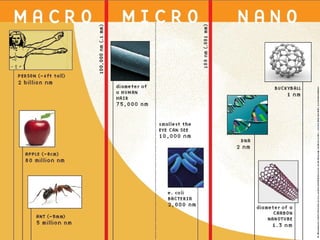 Nanorobotics involves the design and construction of robots on the nanoscale level using components that are between 1 to 100 nanometers. It includes programming swarms of nanorobots to perform tasks like breaking up kidney stones or repairing spacesuits. While nanorobots show promise for medical applications and space technology, challenges remain around their power supply, control, and potential health and environmental risks if replication gets out of control. A pioneer in medical nanorobotics developed prototypes for applications like monitoring brain aneurysms and treating diabetes.