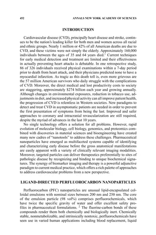 This document discusses opportunities for using nanomedicine to address cardiovascular diseases. Specifically, it proposes using perfluorocarbon nanoparticles targeted with ligands to noninvasively assess and treat atherosclerosis in asymptomatic patients. The nanoparticles could detect plaque neovasculature using MRI to identify vulnerable lesions. They could also locally deliver antiangiogenic drugs at much lower doses than systemic treatments to reduce plaque progression. Preliminary studies in rabbits found targeted fumagillin nanoparticles significantly reduced integrin expression, indicating reduced angiogenesis, after one week.