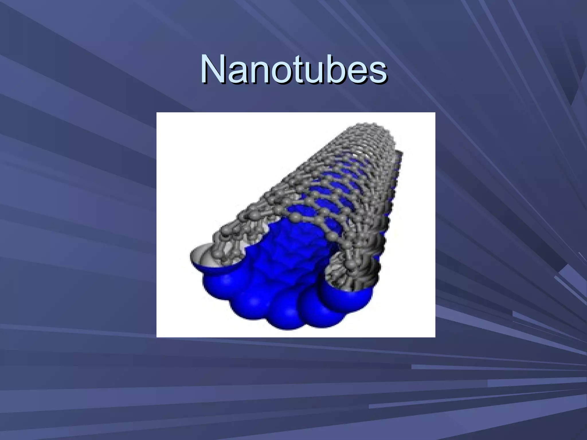 Nanotubes are flat layers of graphite rolled into tubes. They can be single-walled or multi-walled, and have different configurations including armchair, zigzag, and chiral. Nanotubes have exceptional properties such as high tensile strength, elasticity, density, thermal and electrical conduction, and chemical inertness. Potential applications of nanotubes include using them to reinforce composites, in electrical fields, and in fuel cells.
