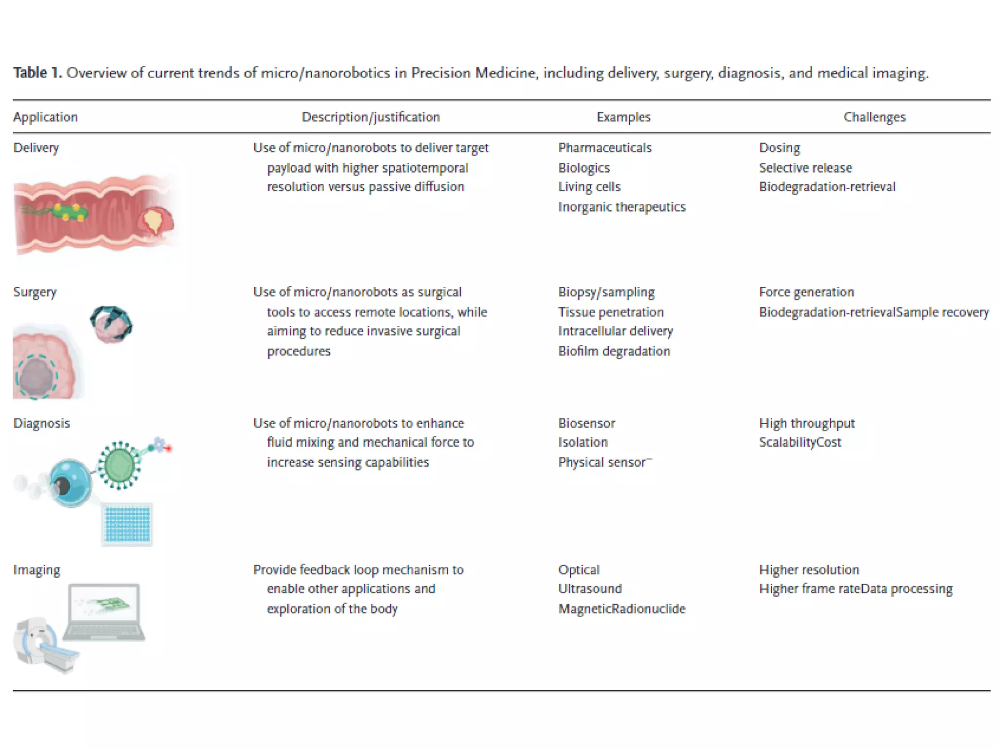 (3) Detecting diseases and delivering targeted treatments like vaccines or stem cells.