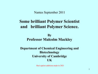 Werner Kuhn and Hans Kuhn were brilliant 1940s Swiss polymer scientists who developed theories on random coil statistics and entropy of polymer chains. Their work provided a foundation for understanding rubber elasticity. Andrew Keller, a 1950s-1970s Hungarian physical chemist, made important contributions to understanding polymer crystallization through his work on polyethylene single crystals. Pierre de Gennes, a prominent 20th century French physicist, applied his expertise in areas like superconductivity to develop the theory of polymer reptation. Piet Lemstra and Paul Smith were 1980s Dutch polymer scientists who successfully produced high modulus polyethylene through solution processing techniques.