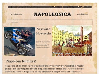 Napoleon has been caught having an affair with Marie-Louise, the niece of Marie Antoinette. This raises questions as to why Napoleon gave up on his wife Josephine, who some say was a big spender who owed people money, or because she failed to provide Napoleon a son as heir. However, Josephine denies the affair and says Napoleon loves her very much.
