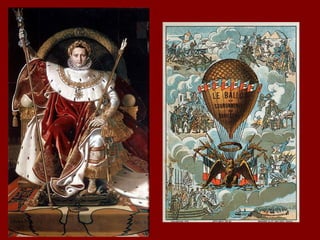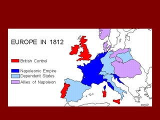 Napoleon was one of the greatest military commanders in history who conquered much of Europe through military victories. He introduced reforms across Europe that included establishing law codes and abolishing feudalism. However, he ruled as a dictator and centralized power in France through a vast secret police network and state control of the press and expression. After becoming emperor in 1804, Napoleon continued expanding his empire through war but met resistance. His invasion of Russia in 1812 ended in disastrous defeat, contributing to his eventual defeat and exile.