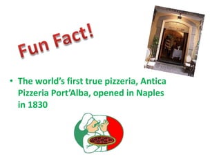 The document provides information about Naples, Italy. Naples is the capital of the Campania region located in southern Italy. It has a population of around 960,000 people and was founded by the Greeks. Notable features of Naples include its historic center, the birthplace of pizza, and good weather along the Mediterranean coast even in the summer. The presentation includes photos of landmarks and neighborhoods in Naples.
