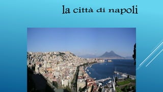 Napoli è un comune italiano situato nel golfo omonimo, ed è la terza città d'Italia per popolazione, con un ricco patrimonio storico e artistico che include il centro storico dichiarato patrimonio dell'umanità dall'UNESCO. Tra i suoi principali monumenti ci sono la Chiesa di San Domenico Maggiore, il Duomo di Santa Maria Assunta, e diversi castelli storici come Castel dell'Ovo e Castel Nuovo. La città è anche il luogo di nascita e attività di importanti figure artistiche e culturali come Caravaggio, Artemisia Gentileschi, Eduardo De Filippo e Domenico Scarlatti.