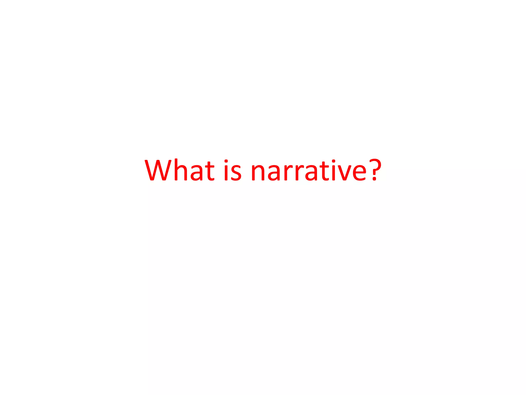 A narrative is a format that describes a sequence of fictional or non-fictional events through writing, speech, film, or other media. Narrative theorists have proposed various ways to analyze narratives, including Vladimir Propp's classification of character roles and functions, Tzvetan Todorov's theory of narratives moving from equilibrium to disruption and back again, and Roland Barthes' identification of five narrative codes. Todorov and Propp's theories are particularly applicable to analyzing the horror genre, as horror often involves disrupting normality and identifying common character archetypes like heroes and villains.