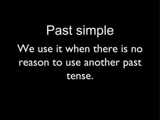 This document discusses the use of different past tenses in narrative, including the past simple, past continuous, past perfect, and past perfect continuous. The past simple is used for short completed actions and longer situations. The past continuous expresses ongoing actions in the past. The past perfect refers to events that occurred before another time in the past, and the past perfect continuous emphasizes ongoing actions up until a point in the past. Each tense is defined and examples are provided to illustrate their proper uses in narration.