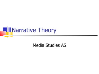 The document discusses several theorists who have analyzed narrative structures in media. Vladimir Propp analyzed Russian fairytales and identified character roles like the hero, villain, and donor. Tzvetan Todorov suggested most narratives follow an equilibrium-disequilibrium-new equilibrium structure. Roland Barthes identified five narrative codes used in stories: action, enigma, symbolic, semic, and cultural. Claude Levi-Strauss examined how stories reflect the values and myths of cultures through binary oppositions like homesteader/native American. Theories by these thinkers can be applied to analyze the structure and themes of film openings and endings.