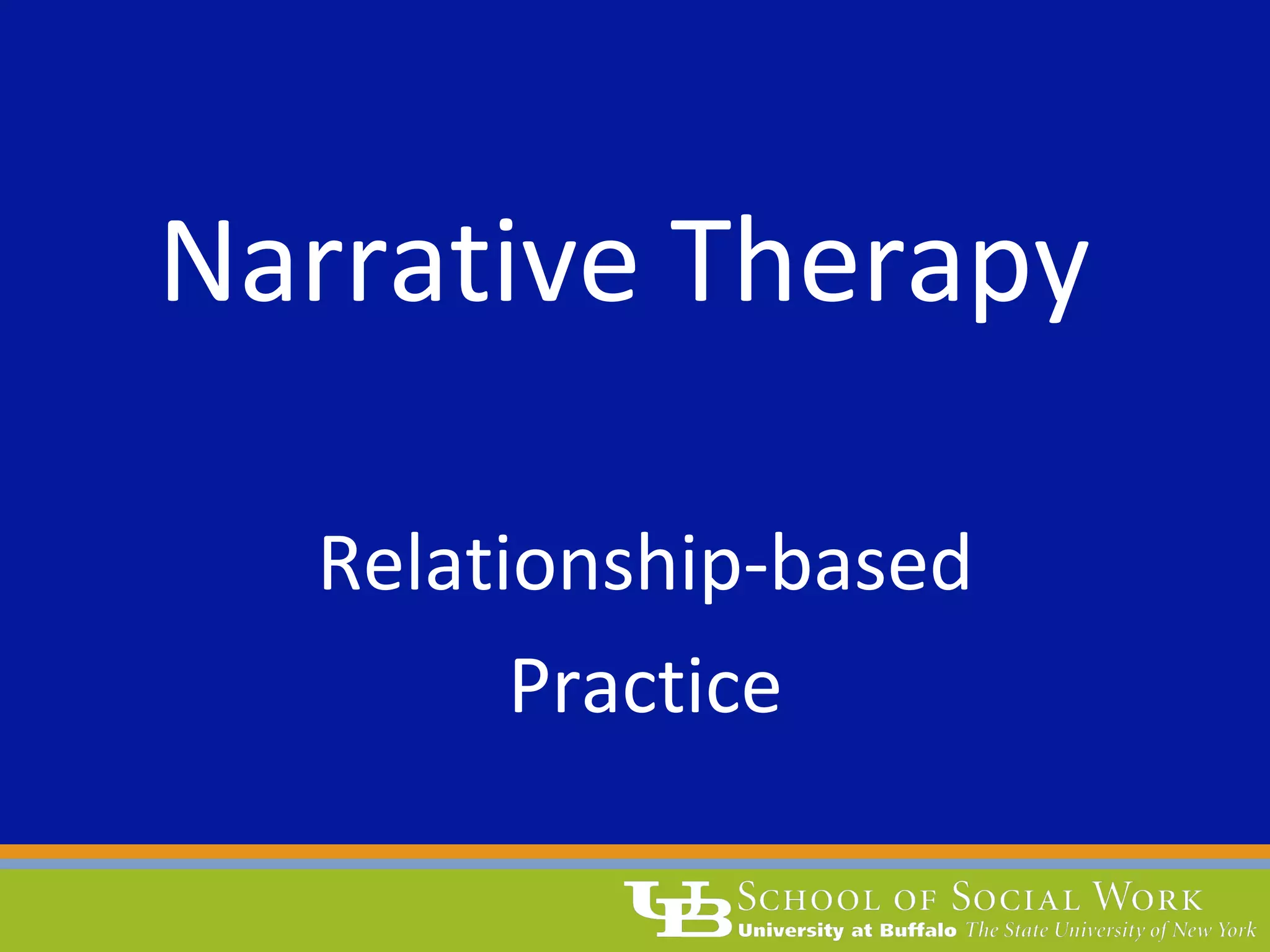 Narrative therapy views problems as arising from the stories people tell about their world and aims to help clients develop alternative stories. The therapist acts as a detective to understand the client's experiences and helps the client become the author of their own life by asking questions, exploring exceptions to problems, and facilitating the discovery of new meanings and perspectives through conversation. The goal is not to fix problems but to create shifts in the client's stories that empower them and bring new competence and resolution to difficulties.