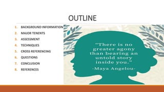 Narrative therapy, developed by Michael White and David Epston in the 1980s, emphasizes a non-blaming approach that positions clients as experts in their own lives and seeks to separate problems from personal identity. The therapy employs techniques such as externalization, re-authoring stories, and exploring unique outcomes to help clients construct alternative narratives and redefine their experiences. This approach contrasts with cognitive behavioral therapy by focusing on the narrative of a person’s life rather than merely addressing negative thought patterns.