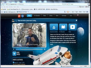 The document outlines NASA's vision and commitment to advancing STEM education through various initiatives aimed at engaging students, educators, and institutions. It highlights programs like the Summer of Innovation, partnerships with organizations, and opportunities for students to participate in NASA's missions. Additionally, it emphasizes the importance of diversity and building a future workforce to support NASA's objectives.