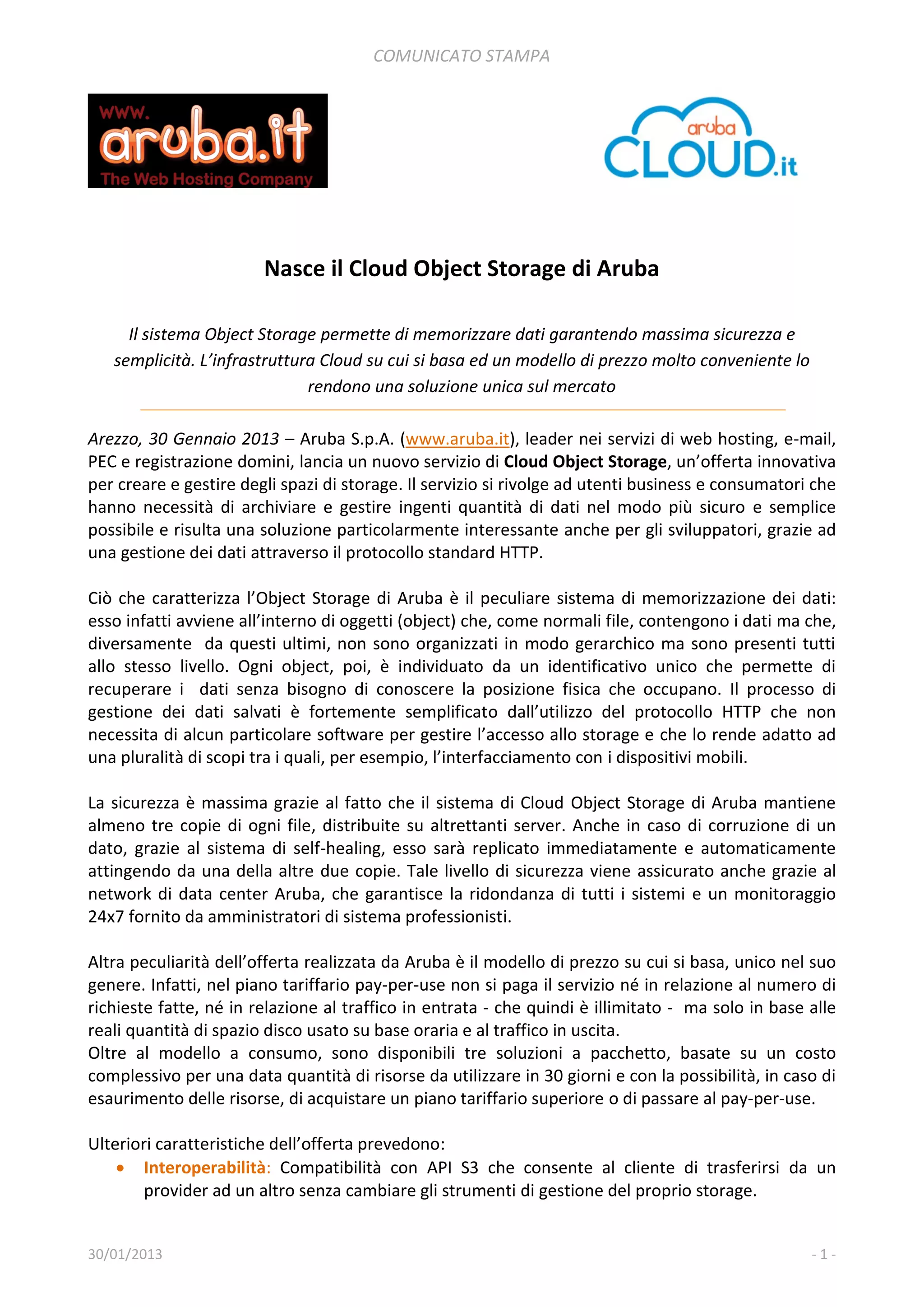 Aruba S.p.A. ha lanciato un nuovo servizio di cloud object storage che permette agli utenti di archiviare e gestire grandi quantità di dati in modo sicuro e semplice, utilizzando un modello di prezzo pay-per-use. Il sistema offre massima sicurezza attraverso la duplicazione dei file e caratteristiche come interoperabilità con API S3, localizzazione dei dati e facile gestione dei servizi. Questa offerta è particolarmente vantaggiosa per aziende e sviluppatori che cercano una soluzione flessibile e conveniente per le loro esigenze di storage.