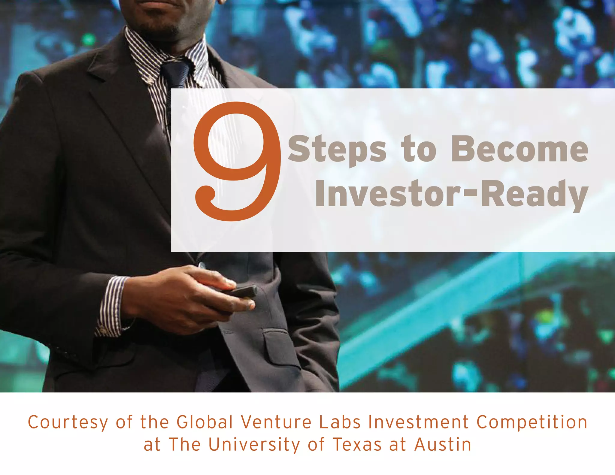 The document outlines 9 steps to become investor-ready for startups. It summarizes each step with a quote from industry experts, including finding passion, identifying market pain points, refining your target, building an amazing team, networking extensively, avoiding buzzwords, preparing for tough questions from investors, delivering an impressive pitch, and celebrating successes. It also provides an overview of the Global Venture Labs Investment Competition, including historical trends showing growing interest in clean energy, life sciences and IT startups over time. The competition offers a substantial cash and in-kind prize package to the winning team.