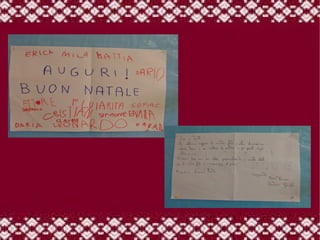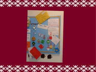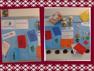 Christmas is celebrated as a time for friends, family, and sharing gifts. The document expresses thanks to friends who share Christmas ornaments and postcards from Turkey, Portugal, and Italy with the Corredoura Kindergarten in January 2016.