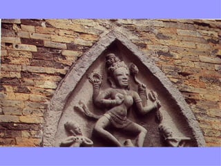 The document discusses the concept of Nataraja, the dancing form of Shiva. It describes Nataraja as being mainly worshipped in Tamil Nadu temples. The key aspects covered include the symbolism of the different hands and elements represented in iconic images of Nataraja. The dance of Nataraja is said to represent the five sacred acts of creation, protection, dissolution, concealment, and grace. The origins and development of the Nataraja theme from ancient scriptures and its interpretations by scholars over time are also summarized.